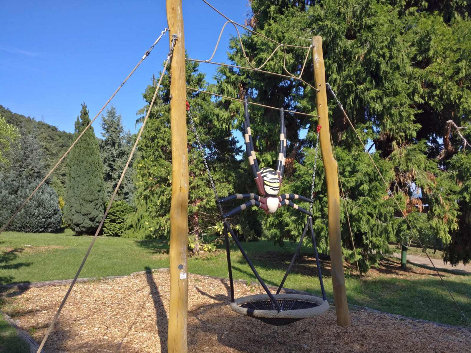 Az arborétum nagy része a domboldalon helyezkedik el, a növénycsoportokat és a pihenőhelyeket széles teraszokon helyezték el. A látványban az örökzöldek dominálnak, gyönyörű cédrusok, jegenyefenyők, ciprusok emelkednek az évelőágyak és a szépen nyírt gyep fölé. A pergolákat és méretes fajátékokat belekomponálták a látványba, óriáscsúszda rejtőzik az atlaszcédrusok csoportjában, meghökkentően élethű festett pók tartja a hálóhintát egy napos tisztáson. A 2019-ben még fiatalka levendulás évelőágyak most teljes pompájukban láthatók és a virágos cserjék szerelmesei mocsári hibiszkus gyűjtemény tányérnyi virágaiban gyönyörködhetnek.
